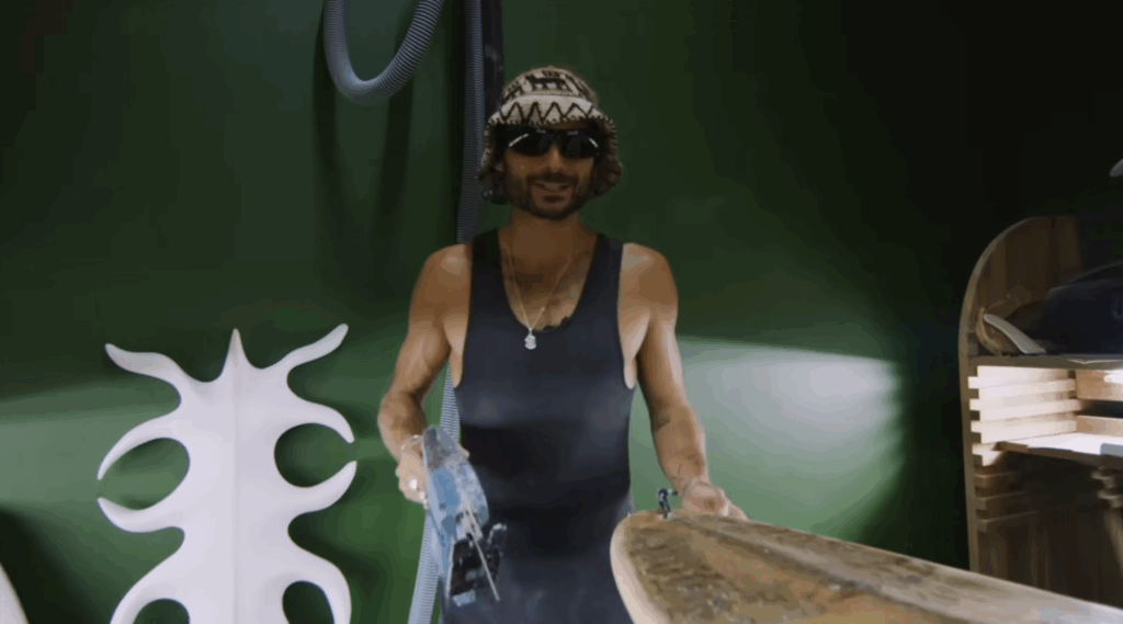 – Lastly, what started as something to fill the time and keep up with Ozzie Wright — while Dion had a broken leg and was living at Oz’s compound — has turned into a full-blown passion, and a medium (up cycling broken or discarded surfboards) that Dion intends to continue exploring for the next decade.