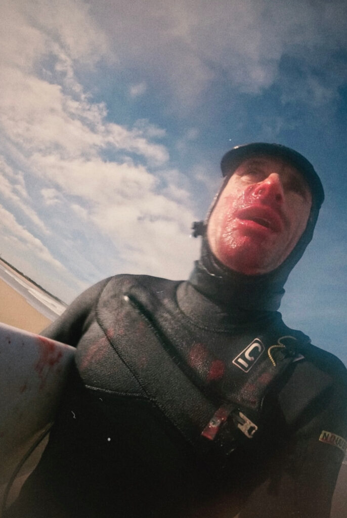“I was bleeding everywhere and I was kind of in shock,” he said, “but I was sure that I hadn’t been hit by the fin, because I felt the impact straight in my face — it felt like the rail, maybe.”