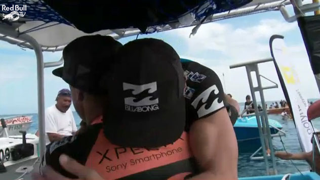 Mick Fanning has beaten Joel Parkinson in the final of the 2012 Billabong Pro, Tahiti. Mick clocked a 9.37 and 9.50 to beat Joel’s 9.50 and 8.87 in what was as exciting a final as you could probably hope for. “I knew that 35 minutes was a long time and I knew they were gonna come, it was just a matter of when,” said Mick breathlessly, immediately following the final. “I just kept my patience, y’know, it’s the final, you’ve got nothing to lose and everything to gain. I just tried to keep my composure. I had Raimana, from Raimana’s World, he was directing me around the traffic and called every single wave perfectly, so I was stoked.”