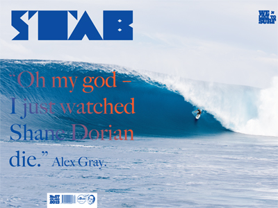 On the cover of Stab issue 67: Shane Dorian reigns supreme in handsome lodgings, French Polynesia. Words by Derek Rielly | Photos by Pat Stacy The first thing we have to make clear about this photo is the important issue of size. When your boat swings into this particular bay and there’s no one out, ain’t a way of telling if it’s six, eight or 15 feet. But if you’re Shane Dorian and in you’re in French Polynesia filming a reality TV pilot that features you conquering giant waves around the world and you’ve just “pulled the trigger” on chasing a swell and there’s a whole film crew, and your travel buddy Alex Gray, depending upon you and it looks like the wind is going to come up and ruin this moment, well, there ain’t time for contemplation. You just grab a mid-sized gun (seven-three Carper) and go. “I really had a lot of anxiety,” says Dorian. “It’s the first time I’ve surfed this wave and I know it’s extremely fickle. And right as we got out, the wind started to blow. It was really light but I knew it would blow out. I knew I had to make the most of our little window. I caught a warm-up wave and then waited for a set. I caught that one wave, the wind came up, and it was all over.” Ain’t he modest! Alex Gray, the 26-year-old, LA-based big-wave surfer, wants to make something clear. “Shane Dorian is undoubtedly the best big-wave surfer in the world.” Tell us why! “Okay, it was 10-to-12 feet and I caught two 12-footers and out of nowhere this wave came and stretched across the whole reef, like a closeout, and Shane’s paddling halfway up and it looks like he’s not going to go, but then, in a five-foot radius around Shane, it backs off and Shane flips and hooks under the lip, freefalls on his toes, barely pulls in his shoulders – the wave nearly takes his board out – and he drives through at least a 20-foot barrel. It was three times the size of anything we’d seen all morning. I was looking inside at his face and he was using every muscle in his body to go through this barrel and 30 feet from the end the tube monster grabbed him, threw him over the falls and vaporised him. I thought I’d just watched Shane Dorian die. It blew its brains out!” “I remember the whole ocean sucking up into a giant barrel. I was so baffled I was on a wave that perfect,” says Shane. “But just when I was starting to be really aware of what was really happening, trying to take it all in, the foam ball blew past me and… erased me. I got totally scorpioned, it bent me completely backwards and my feet went to the back of my head. Alex describes it as “the craziest wave I’ve seen ridden ever. The fact that Shane was in the spot and had the balls to flip it and hook it up under the lip. It goes onto dry reef and the consequences are really bad. I got concussion out here two years ago. This is why Shane is the best big-wave surfer in the world, risking his life paddling into a wave unlike anything most people have ever seen.” Shane saw the photo on Patrick Stacey’s computer that night and said it’s the “best surf shot of my life. I’ll remember that wave for the rest of my life.” “And I shared that moment,” says Alex. “I was looking into that barrel.” And today, when Stab calls, Shane says that, “I was so blown away that I caught a wave like that. It was emotionally draining even though I didn’t make the wave. I was so baffled about the whole experience. I was baffled by how ridiculous that wave was, bionic, bionic barrels.” Buy Stab issue 67 in digital form, right here.